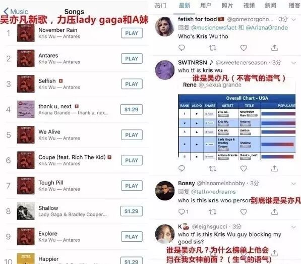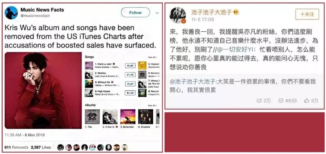 A妹粉不服,iTunes撤榜需進一步核實數據(現已澄清數據準確重新上榜)。不少國內網友包括明星也表示,不論數據多麼好看,也缺少和外網媒體正面剛的底氣。
