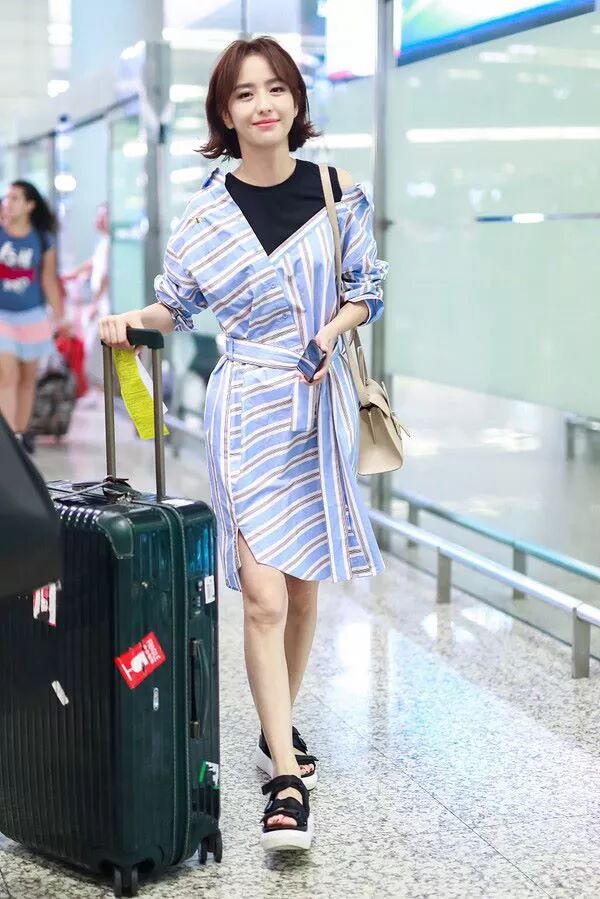 大家都知道夏天條紋元素是很好的選擇,因為特別清新時尚,加上不規則的露肩設計更有個性,特別凸顯腰身的系腰設計恰到好處。
