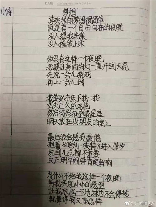 10.【夢想】我讀小學四年級的侄子今晚寫的作文。 via:@廣聞博見V