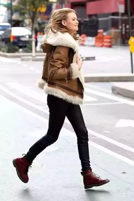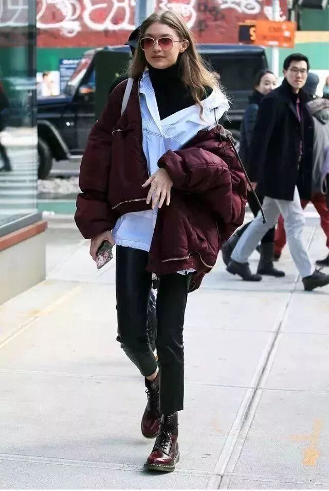 冬天為了保暖,難免會穿的很多,那豈不是顯得整個人特別浮腫。這個時候就需要穿上一雙馬丁靴了。相信我,絕對可以改善身高比例。