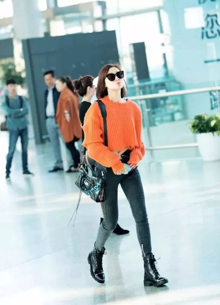 吳宣儀之前在微博曬出的九宮格美照,馬丁靴搭配九分牛仔褲襯得整個人又高又瘦呢~