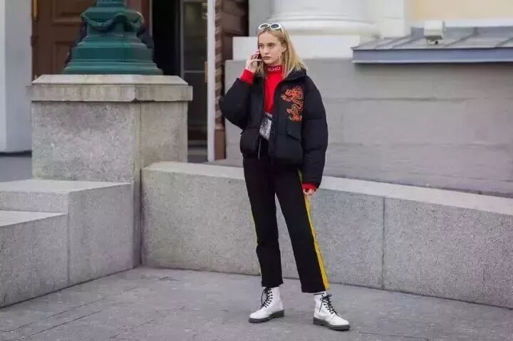 馬丁靴可以搭配中筒襪,之前有人覺得高幫的馬丁靴里再穿長襪會顯得不倫不類。但經過不少時尚人士實踐證明,這樣的穿法也會好看,前提是需要結合衣裝顏色。