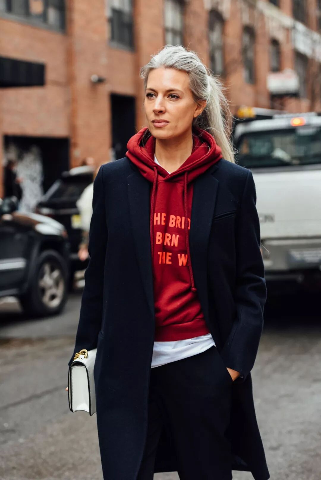 還有大家最喜歡的衛衣,搭配黑色大衣再紮個馬尾,是不是覺得街頭感十足呢!