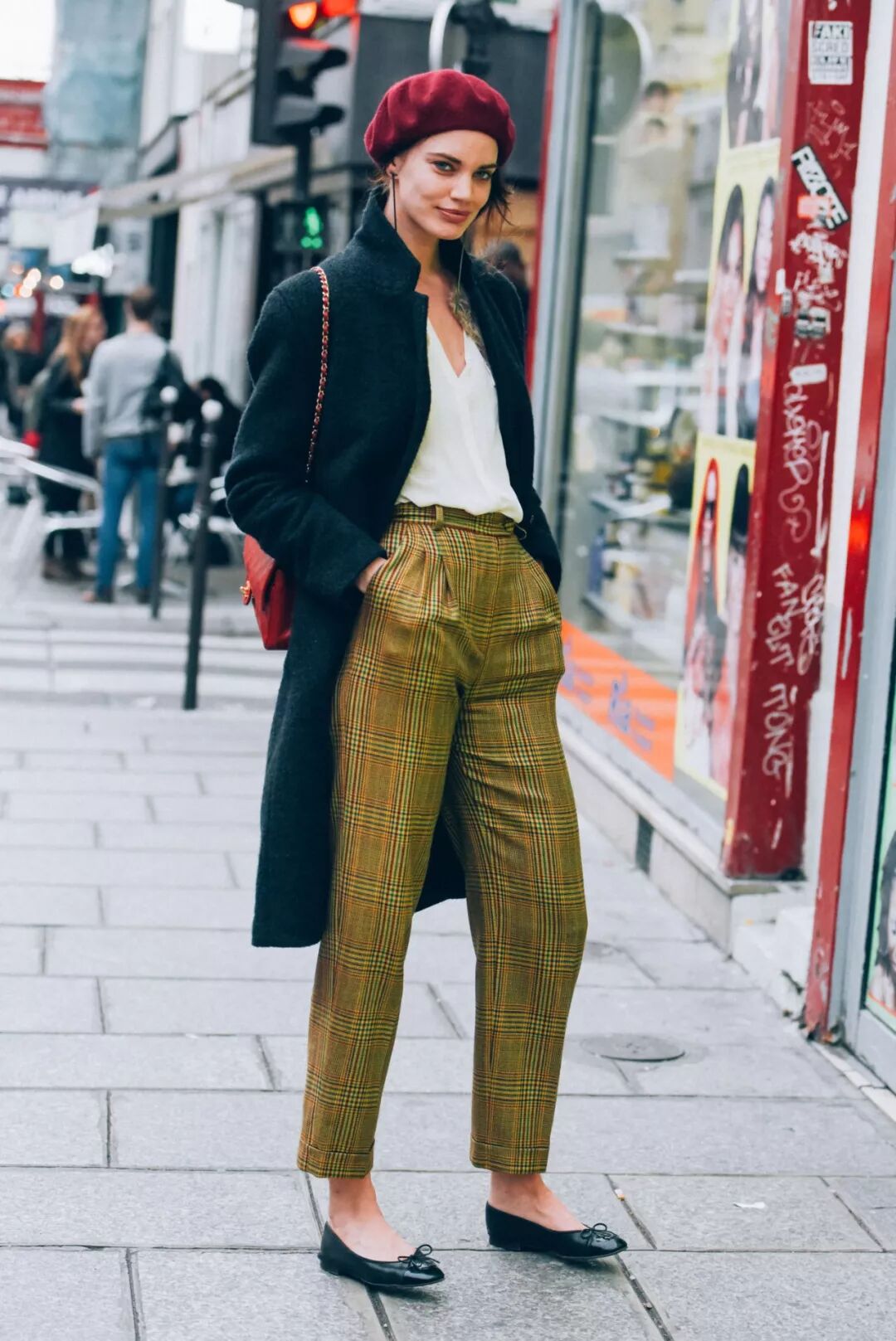 黑色大衣選擇紅色系的口紅,和絲巾一樣都有提亮和畫龍點睛的效果!