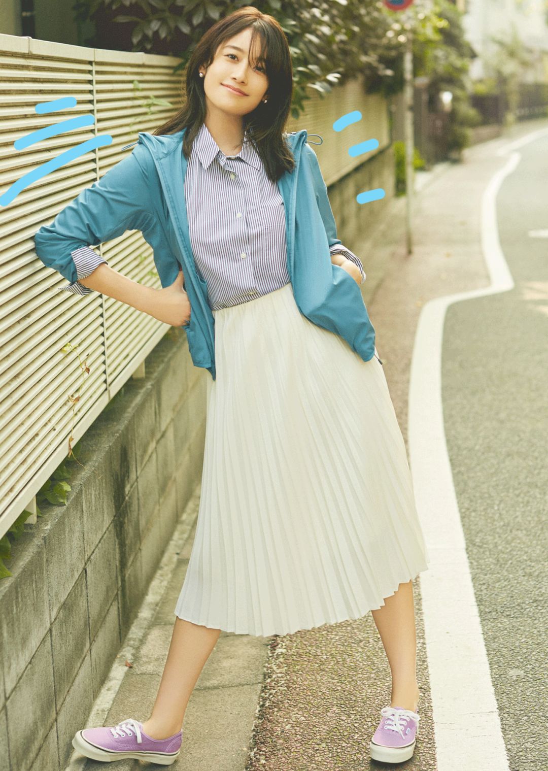 可以像歐陽娜娜一樣,選個跳點的顏色搭同色褲子,穿在大衣里,立馬變時髦。