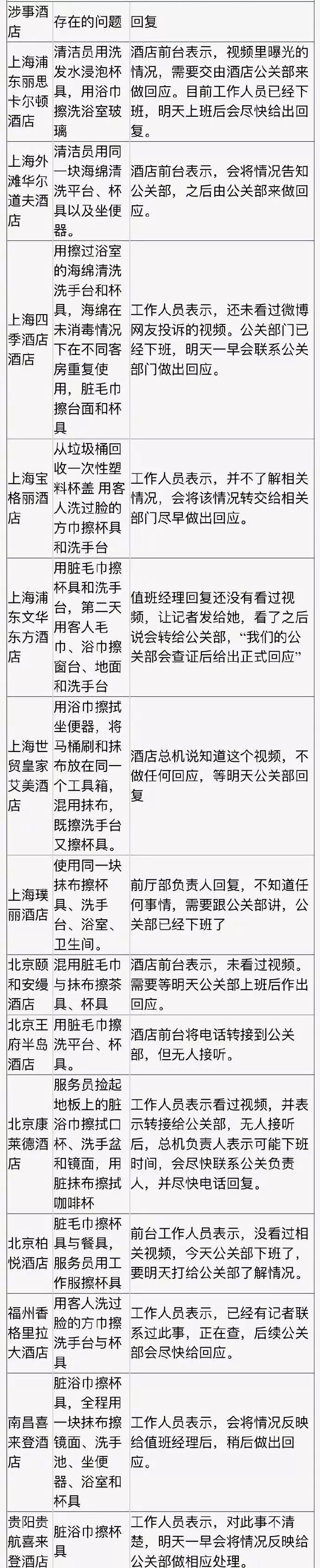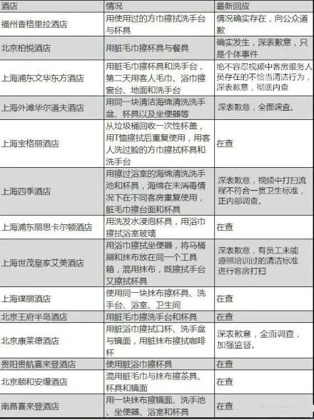 而其他的一些酒店則表示要等公關部的回應