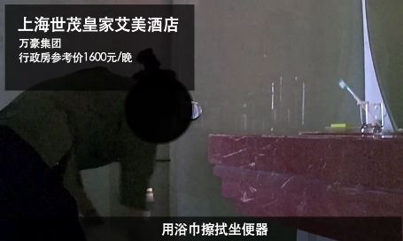上海世茂皇家艾美酒店用浴巾擦坐便器