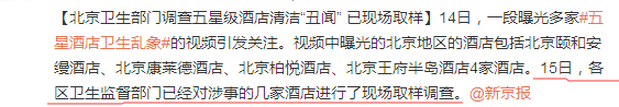 現在北京的各區的衛生監督部門已經對涉事的幾家酒店進行了現場取樣調查。