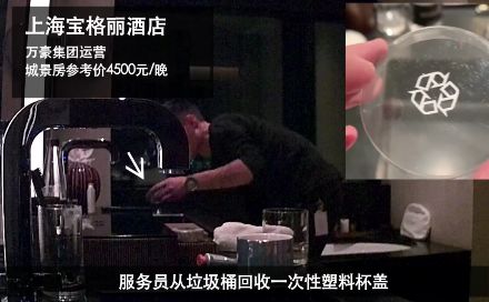 而到了價格更貴的上海寶格麗酒店,服務生竟然從垃圾桶里撿出了一次性塑膠杯蓋。