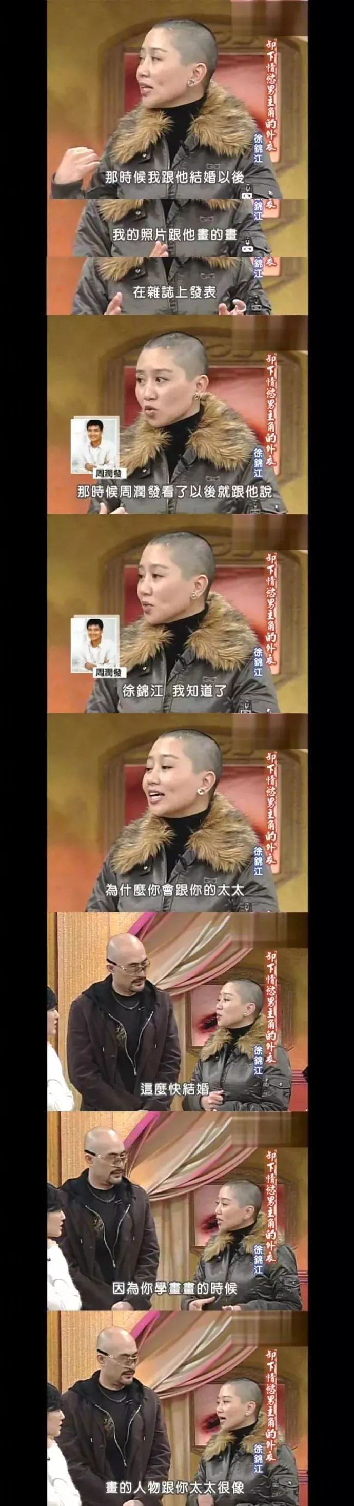 當時可能很多港星都在八卦,徐錦江為什麼匆匆一面就對殷祝平這麼著迷。周潤發是第一個發現其中奧秘的,他打電話跟徐錦江說:「你太太跟你之前一幅畫里的美女特別像哎。」