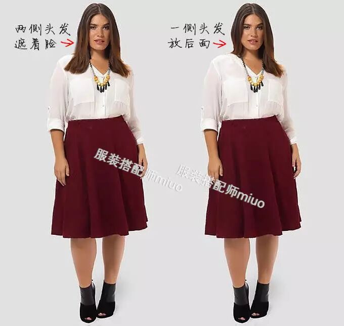 但是,把一側的頭髮放到肩膀後面去,頭部輪廓就立刻變小了,也有脖子了,這樣就顯瘦很多。