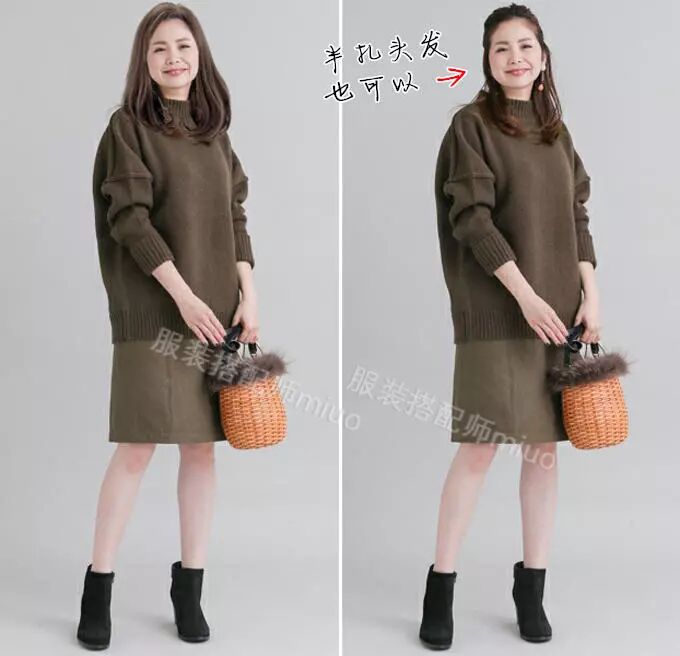 頭髮作為人頭的一部分,它會影響整個頭部的輪廓!秋冬季的衣服本身就很厚實,衣著輪廓偏大,此時如果還披著頭髮、還用頭髮遮住兩側臉頰、遮住兩側肩膀,那麼,你脖子的輪廓,就完全被遮擋了!這樣就會讓你的頭,看起來特別大!
