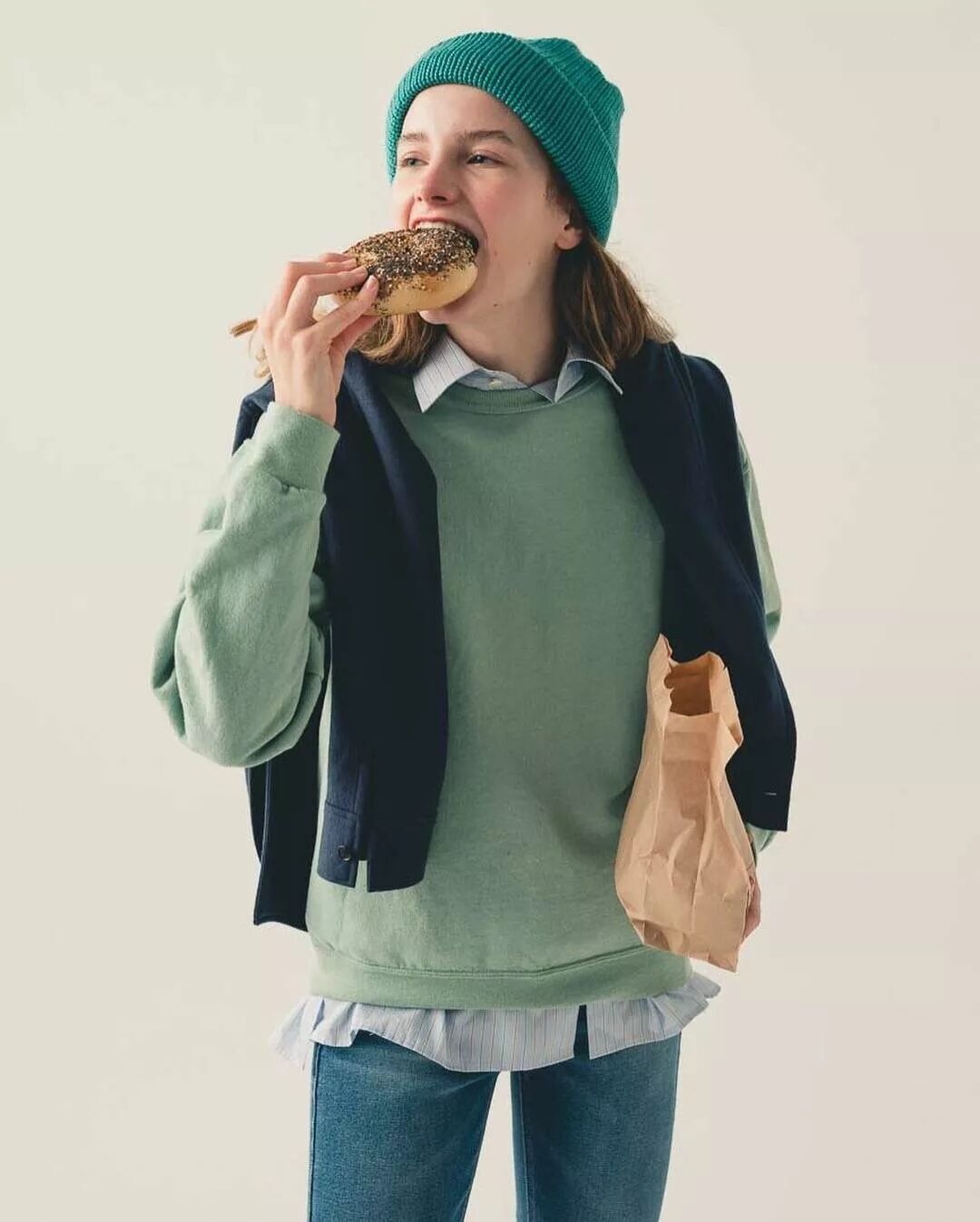 不僅是毛衣,衛衣也同樣可以這樣疊搭~▼