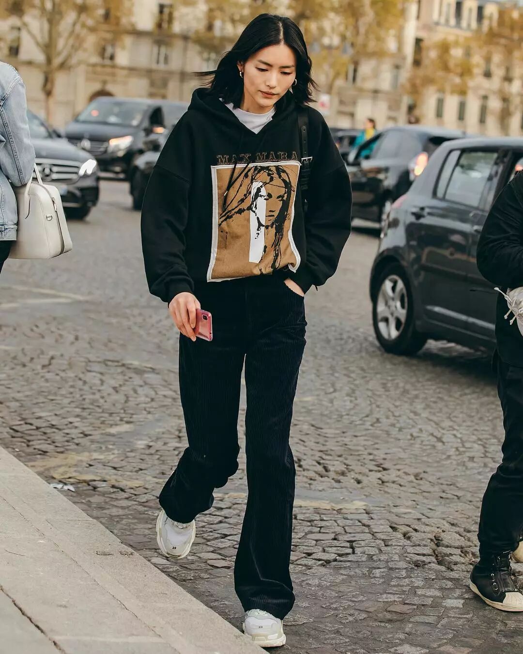 還有衛衣。寬鬆的衛衣容易透風,加上高領衫,保暖性更佳。▼