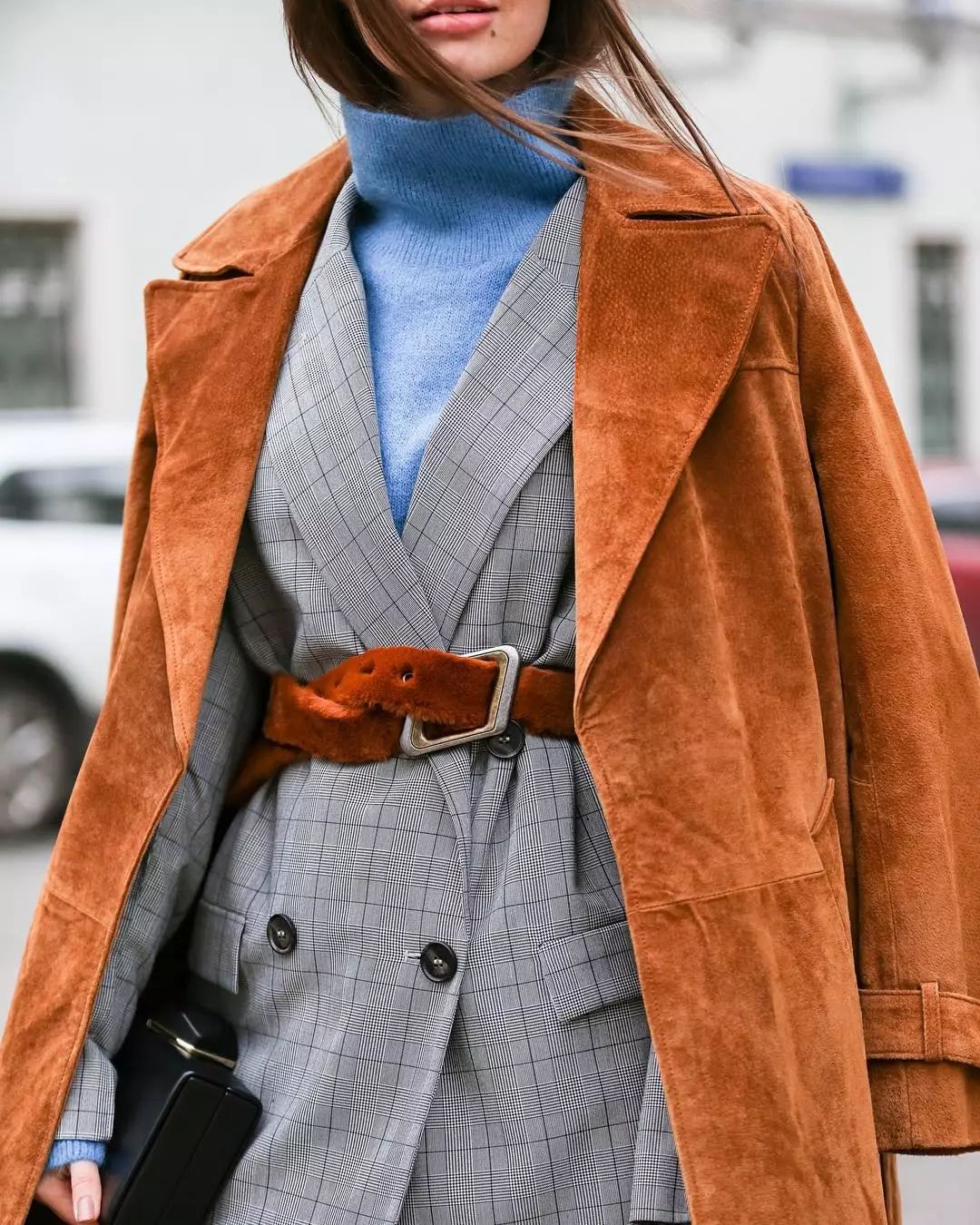 西裝外套做內搭的時候,腰帶也不能忘,顯得更精神,不臃腫。▼