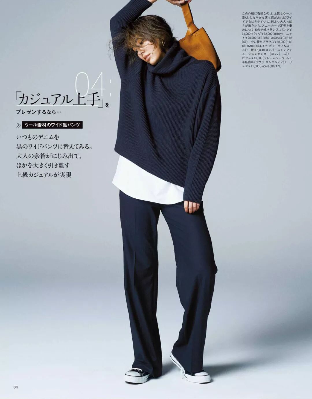 今年高領衫的顏色也更豐富了。有灰色、卡其色、酒紅色等等。不過為了百搭方便,盧老師還是推薦你們買黑色、白色這兩種,所有衣服都能Hold住。