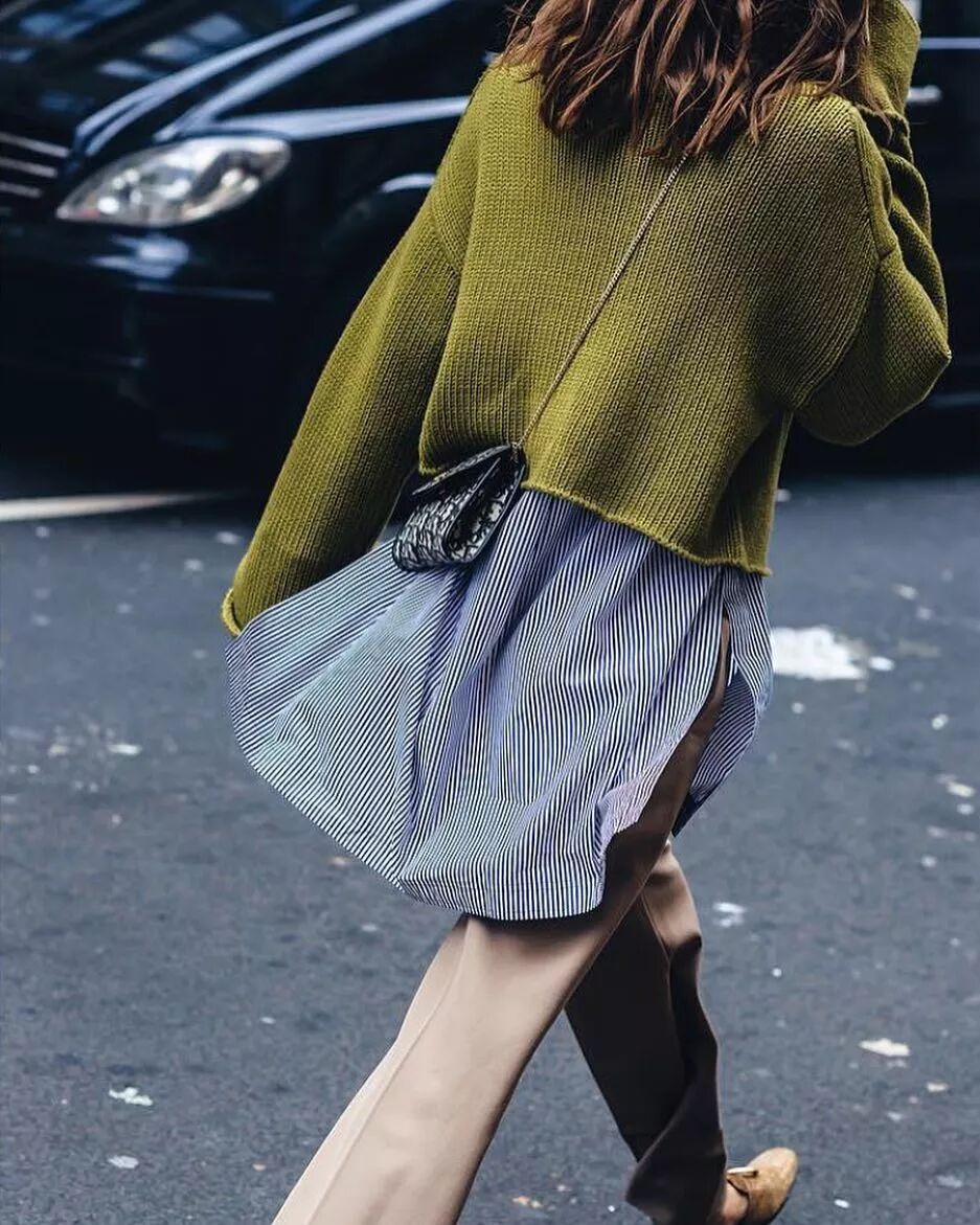 其實,很多時候,毛衣只要塞進正面或側面一角,就挺時髦了。不用費那麼大力。▼