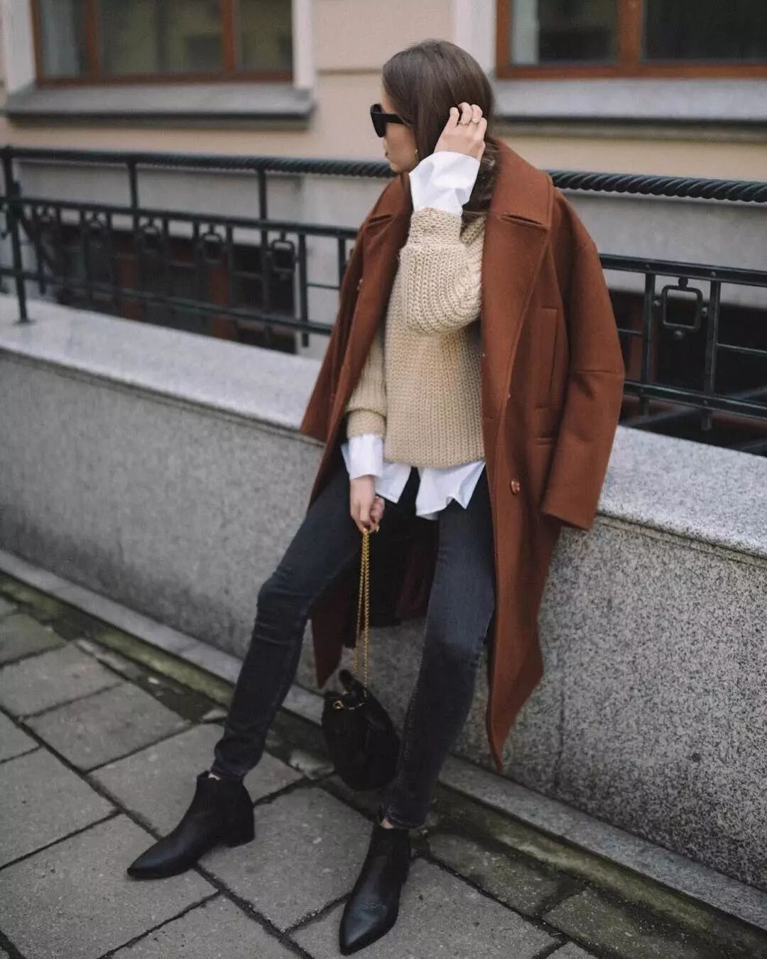 冬天再在外面隨便披一件外套,層層疊疊的,巧妙又出彩。▼