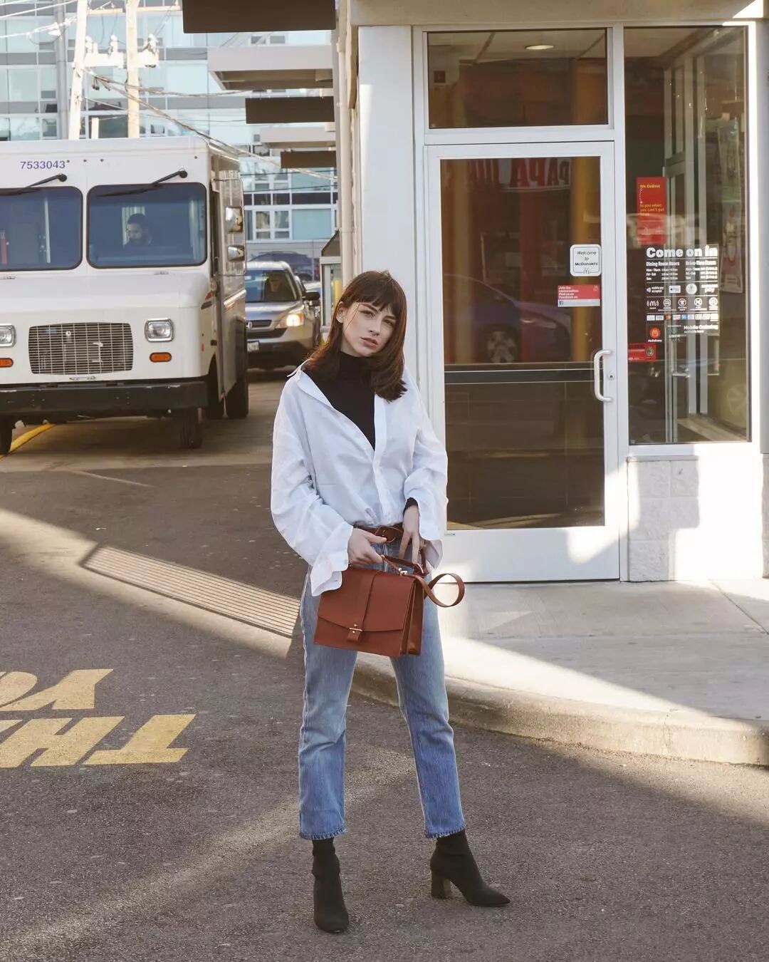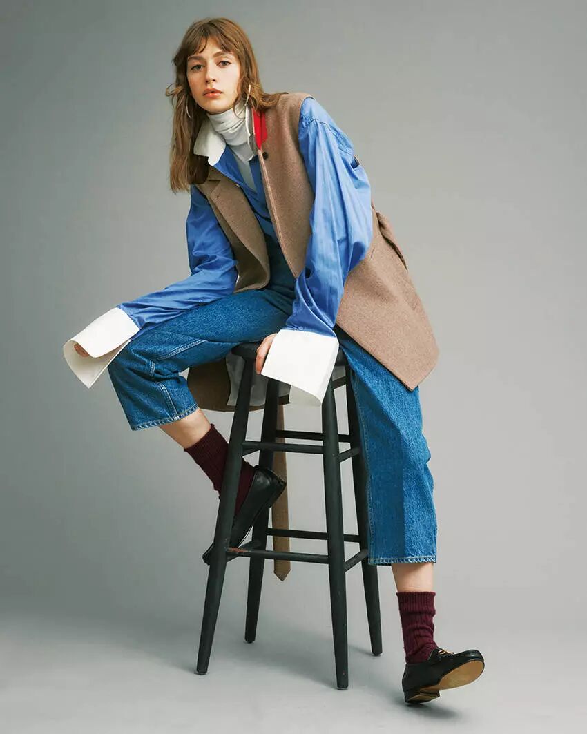 Oversize襯衫里搭高領衫,初秋這樣穿,還有點八九十年代的復古味。▼