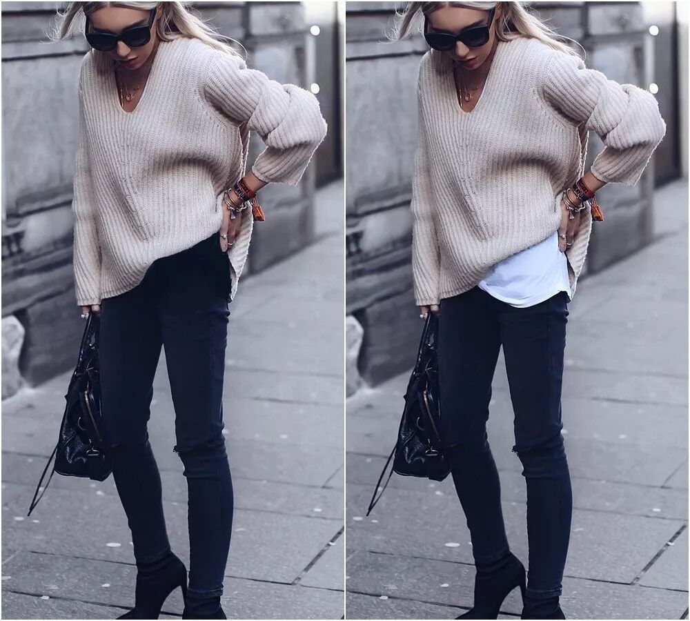 毛衣可以選短一點的,再像她這樣配雙高跟鞋,會好很多。▼