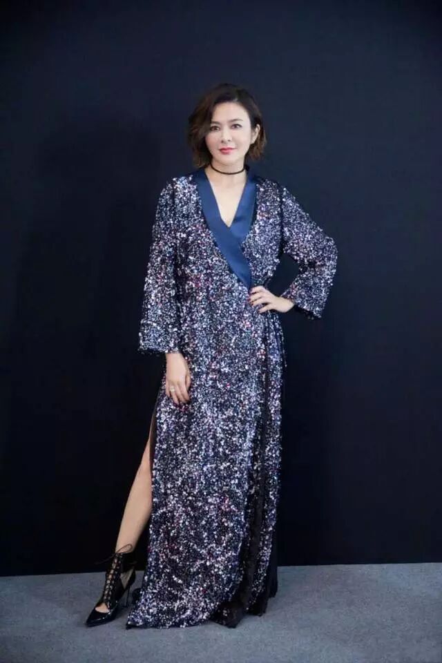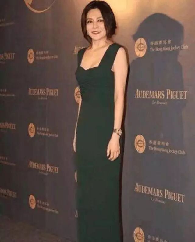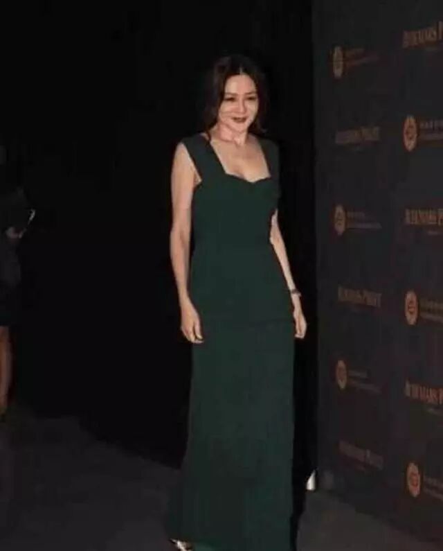 關之琳身穿著一件綠色的吊帶裙顯的時尚也很大方,腳上穿著一雙很高跟鞋,還是能很好的駕馭這樣的身姿,氣質當然也是很不錯的啦,但仔細一看她的頸紋還是很厲害的,直接就出賣了年齡!