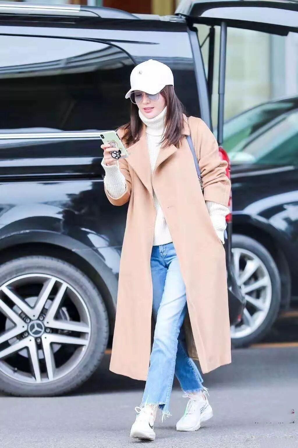 接地氣的藍色牛仔褲,搭配一件綠色大衣,穿出高挑氣質,被大家喜歡,同時腳踩一雙白色運動鞋,穿起來更加舒適,美感十足。