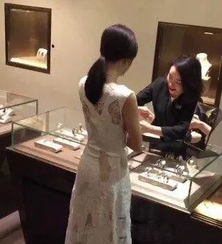 秦嵐穿衣很女神,氣質與魅力,油然而生,同時與櫃姐同台,女神一眼就被認出來了!秦嵐搭配的高貴珠寶,讓自己身價一下就起來了。