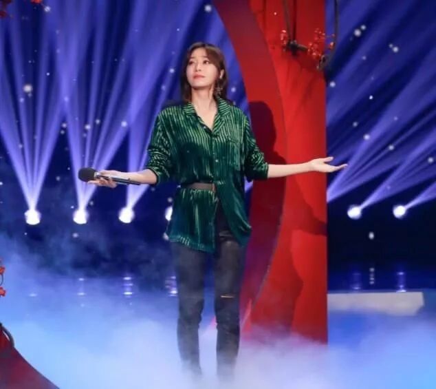 舞台上的秦嵐,不僅歌聲優美,穿衣也超級迷人,抹胸款式得長裙,富有高級感,同時拖地裙擺,略顯高級。