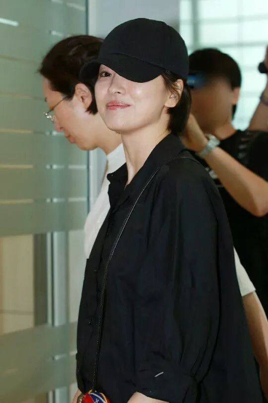 黑色襯衫上衣,寬鬆大碼,都快把宋慧喬顯沒了,同時搭配黑色鴨舌帽子,白皙膚色盡收眼底,圓潤的臉蛋,十分迷人。