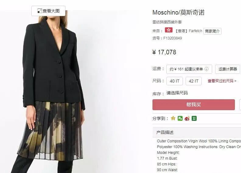 其實這是一件雪紡拼接西裝外套,它上面是黑色西裝的設計,下擺又用了一些雪紡把它拼接上去,整體來說比較獨特,而且它的價格也不菲,普通人是買不起的。