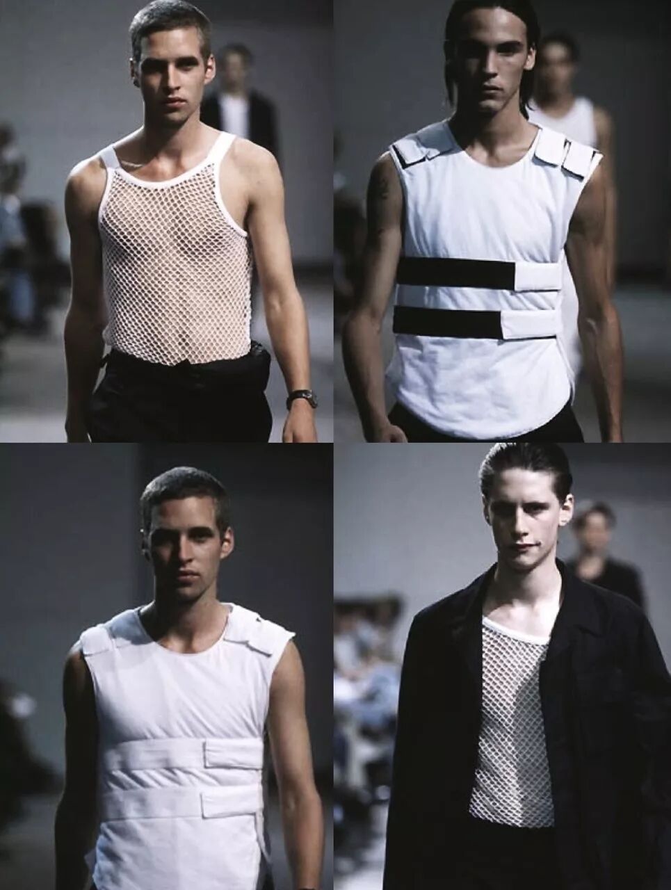 侃爺以 2015 年推出 Yeezy Season 1 質問了 1998 年的 Helmut Lang,他彷彿就似以衣服向 Helmut Lang 隔空喊話: 「Hey Lang My Brother,雖然你將防彈衣的概念加到西服的設計是挺新沒錯,但 No Offence,我覺得一件時尚化的防彈衣,胸前絕不能只有兩條魔術貼束帶,那不是最好,一件好的防彈衣胸前必須有三條束帶!兩條束帶是上世紀的事了,時尚需要進步,今個世紀的時裝必須有三條束帶,That’s Fashion!」 。