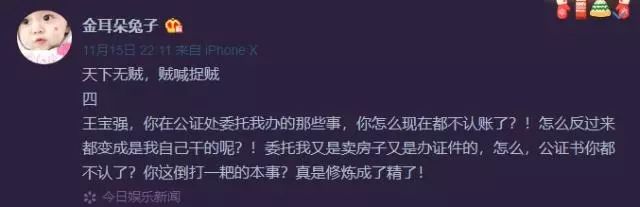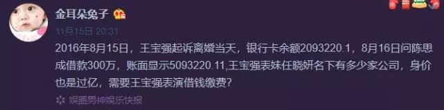 並且在之後從公司的帳戶上轉了190萬到王寶強自己的金融卡上面,三天之後陳思誠就轉了300萬給王寶強,並且留言說「兄弟加油」,至此王寶強帳戶上面共有五百多萬。