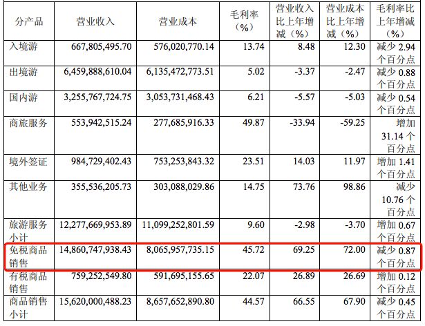 查閱其歷年財報,新旅界發現,因免稅品銷售的毛利率與其他旅遊產品相比高很多,中國國旅的淨利潤主要自於免稅業務,例如,2017年免稅商品銷售的毛利率為45.72%,而旅遊服務的毛利率僅為9.60%。