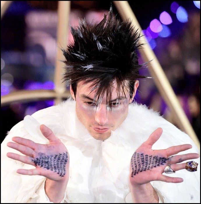 小閃Ezra Miller把紅毯穿成了時裝周,穿了身Givenchy「羽毛裝」高定,化身成「鵝」。