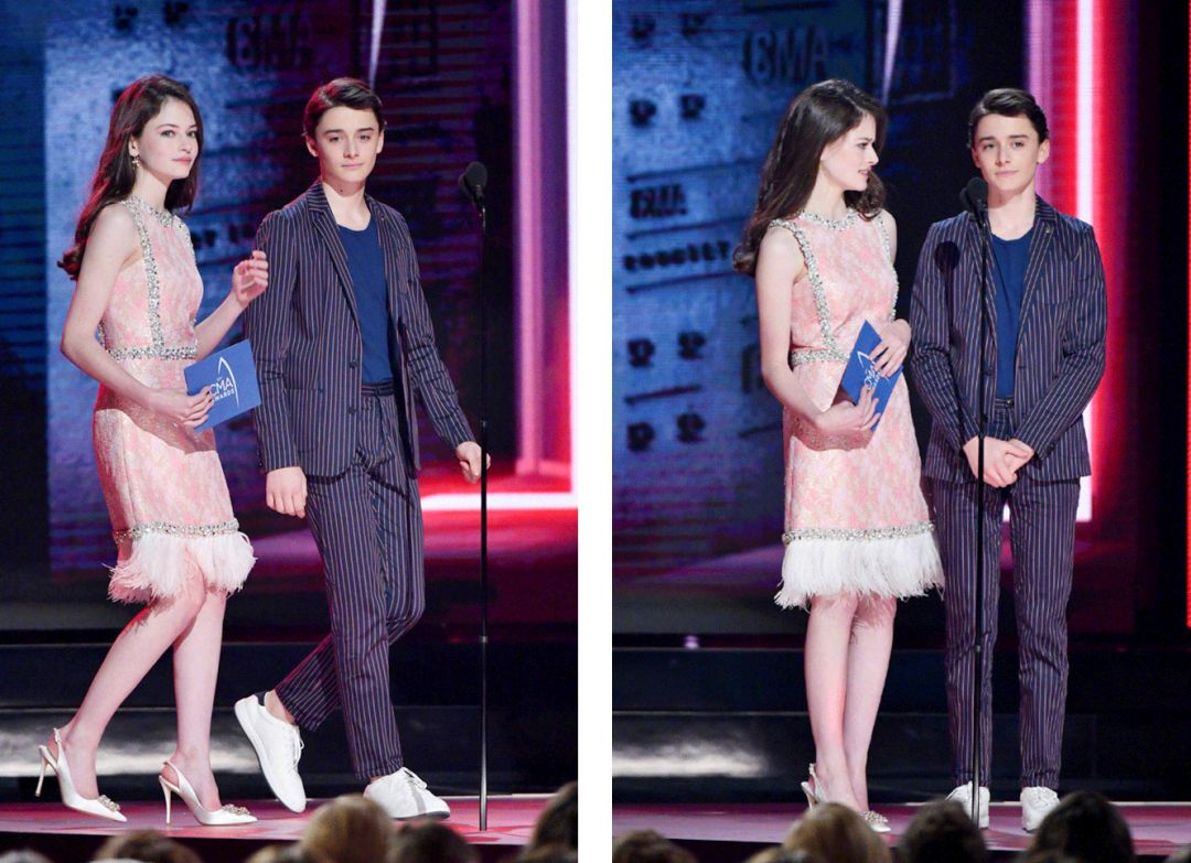 3.CMA頒獎典禮上驚現神仙同框!迪士尼公主Mackenzie Foy和《怪奇物語》男主Noah Schnapp一起擔任了CMA鄉村音樂獎頒獎嘉賓,