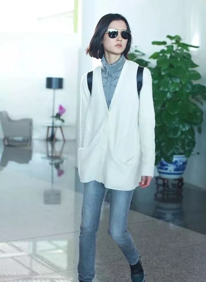 做內搭的話,確實可以增加層次感,但一樣也是要求你足夠瘦,如果你可以瘦到像杜鵑一樣,將羽絨單品做內搭也能穿出寬鬆的感覺,才能這樣穿。