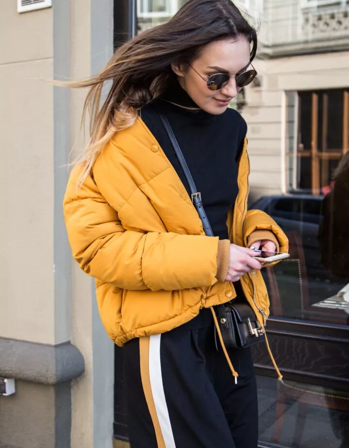 寒冷的冬天,穿上薑黃色的羽絨服在街上行走,很容易讓人感覺溫暖。