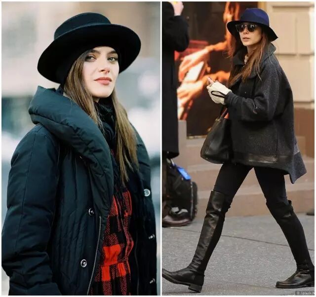 當然不是羽絨服自帶的帽子或者毛線帽,一定要戴一頂小禮帽,簡單的搭配讓你看上去,簡直就是街拍女主呢!