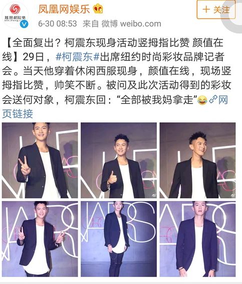 這幾年因為大陸的封殺令,柯震東在內地確實沒什麼消息了,但是在台灣,這幾年他確實有復出的跡象:拍電影,拍廣告,以及為品牌站台等等。