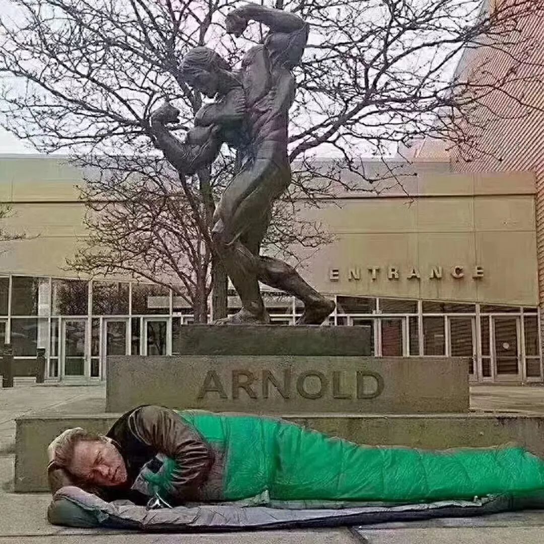 著名演員阿諾·施瓦辛格,曾在網上發布過一張照片,他躺在自己的銅像下睡覺,並悲傷地寫到「時代如此變化」…