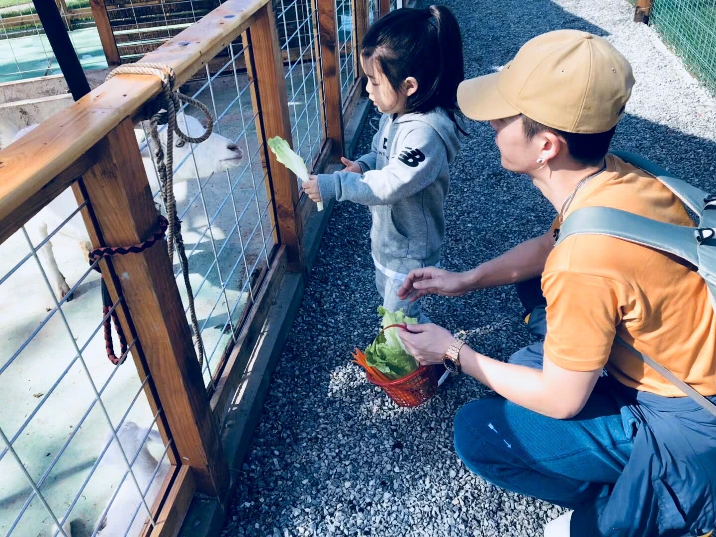 向來只能在書里或者動畫片里看到的小羊,王大姐終於見到實物了,而且還親手給喂大白菜。王櫟鑫還穿著短袖,真是一個像秋天,一個像夏天。但是父女倆同框是真的很有愛啊!