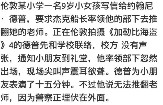 當時德普剛好在《加勒比海盜4》的拍攝中,於是提前聯繫了學校,真的帶了一幫人過去了…
