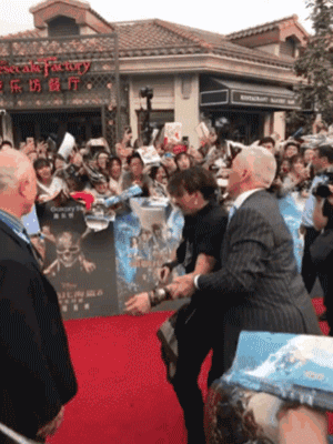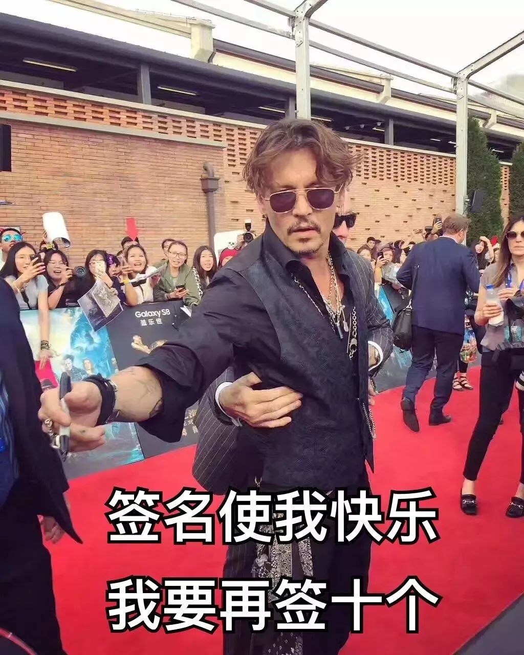 比如去年,在《加勒比海盜5》的首映禮上,德普「別攔我我還能簽.gif」就讓他被微博網友們「哈哈哈哈哈」轉PO了幾萬條。
