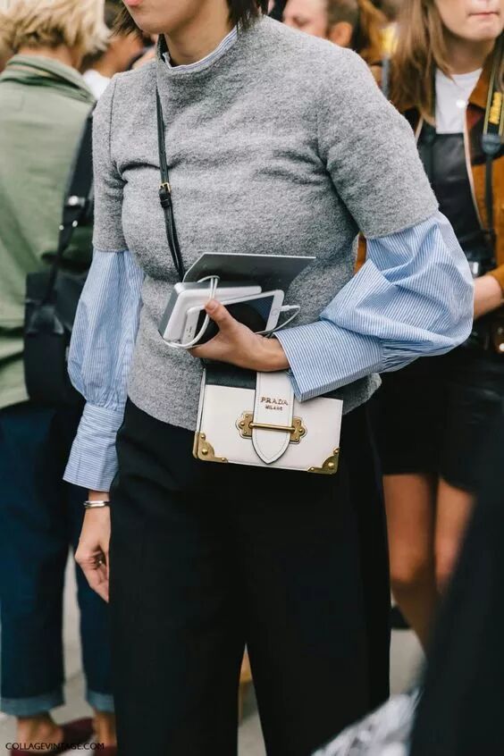 把襯衫當中間層其實並不新鮮了,在秋天的疊搭里經常被用到,敞開了露出一點襯衫邊邊製造層次就ok