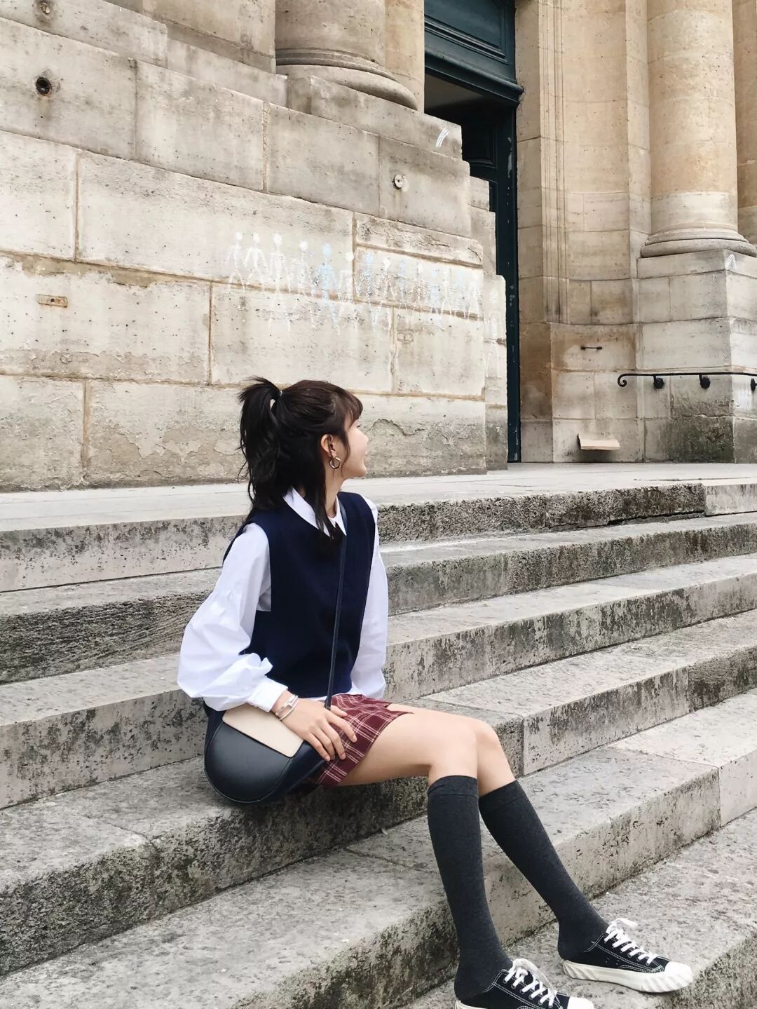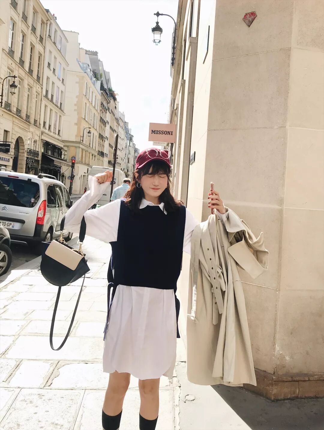 同樣還是襯衫裙,下半身加一條裹身裙,變化出新的套裝。這種穿法近年秋季也很流行哦~