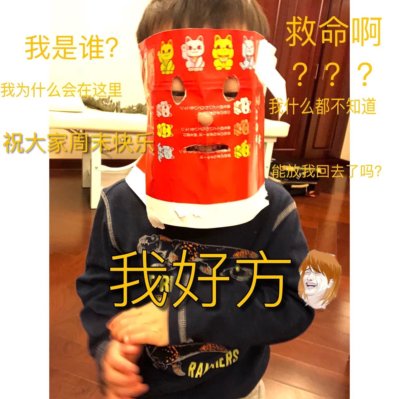 謝楠在坑娃的道路上可謂一去不復返,甚至連吳京都不放過。之前她用紙做了兩個面具,給父子倆玩。還給他們配上了幽默的對話:我好方;我也是!