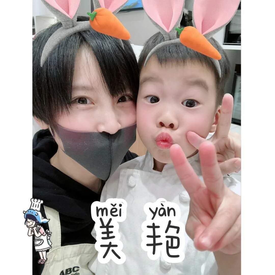 吳所謂穿的衣服很像個小廚師,可能是在學習烹飪吧,Jasper也從小就開始學。之前謝楠就有分享過吳所謂做披薩的全過程,這次有做了什麼好吃的呢?吳所謂對著鏡頭賣萌,雙眉向上挑起,嘟起粉嫩的小嘴,但是都不及他的鼻孔搶鏡。謝楠在口罩的後面偷笑也說不定呢!母子倆一起比耶,話說這美顏功能開到多少度了?