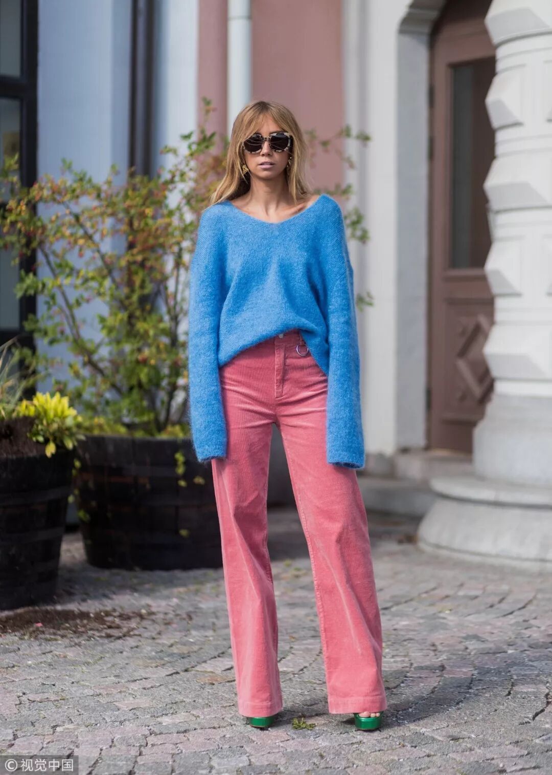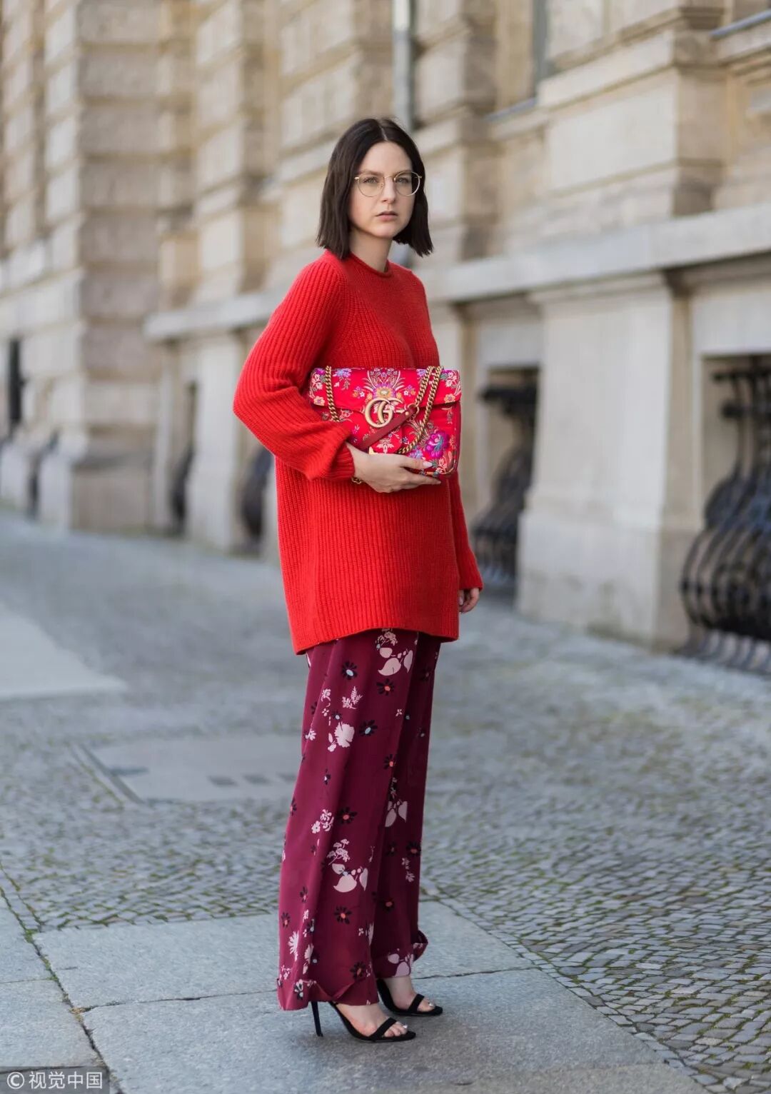 時尚博主Maria Barteczko這身LOOK雖然不算順色搭配卻也同屬相同色系,深淺不一反而更顯層次,花朵圖案更顯活潑。