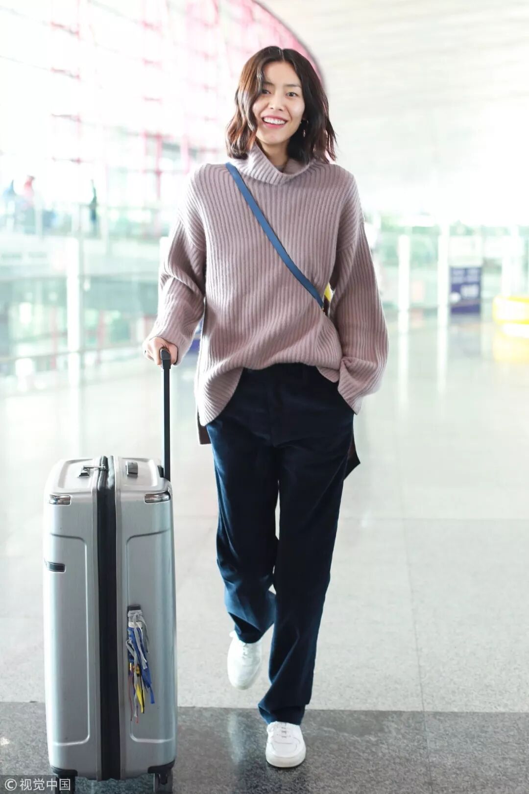 私服LOOK中,大表姐還是慣用簡約搭配法,純色毛衣與闊腿褲相搭舒適又實用。