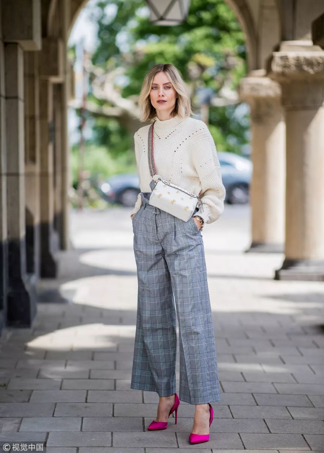 時尚博主Lisa Hahnbueck輕鬆演繹了兩種不同風格!白色毛衣與灰色格紋九分褲穿出清冷高級質感。